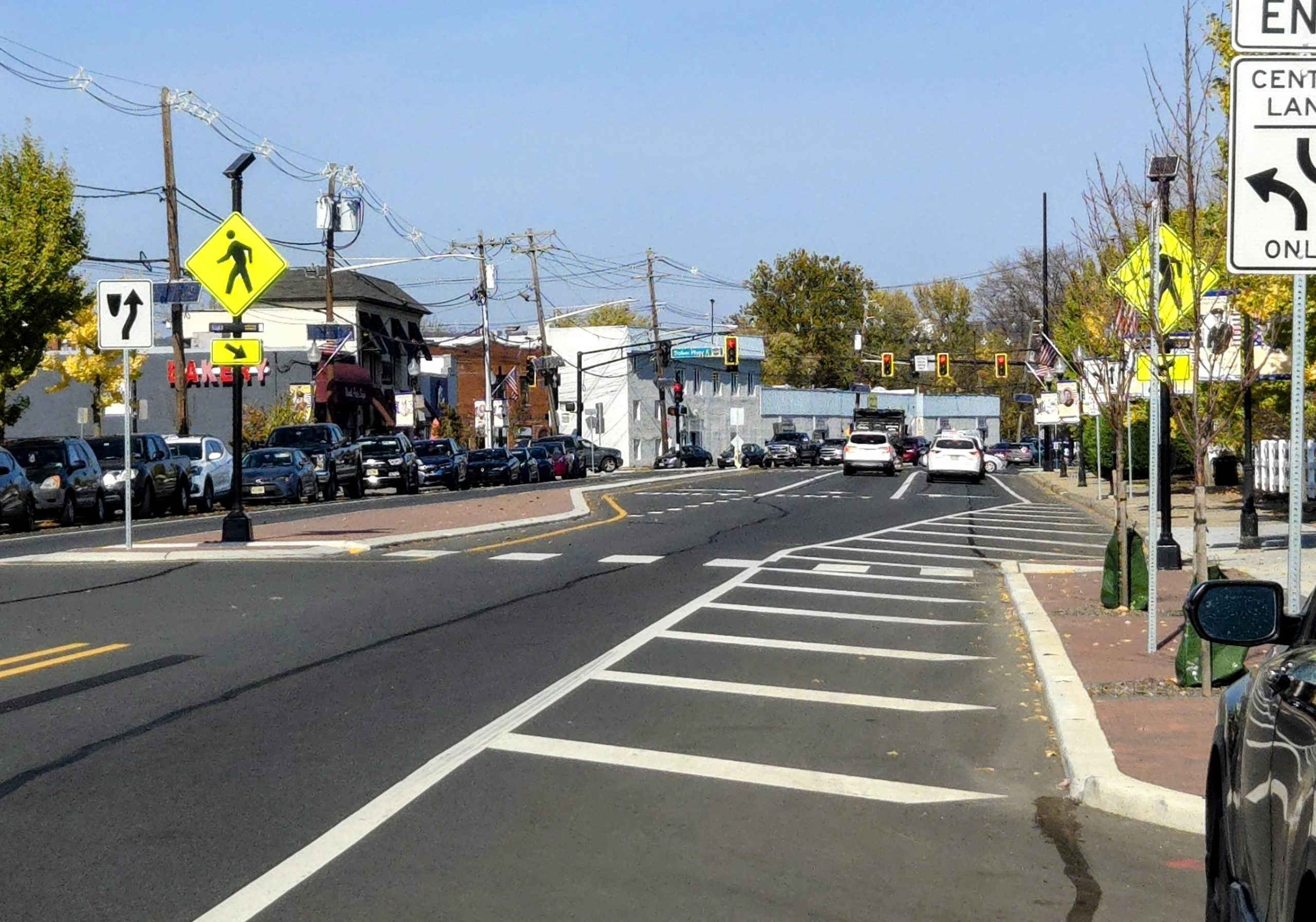 The final striping configuration will include a reduction in the number of travel lanes, commonly referred to as a road diet, between Dukes Parkway (CR 608) and Brooks Boulevard.  This new configuration will maintain one travel lane in each direction, provide a center turn lane, and provide a physical median with a new pedestrian crossing at Knopf Street. New crosswalks and on-street parking spaces will also be installed throughout the corridor.  Due to the location of crosswalks and compliance with regulations set forth in Title 39 of the New Jersey Code, the number and location of on-street parking spaces will change from existing conditions.